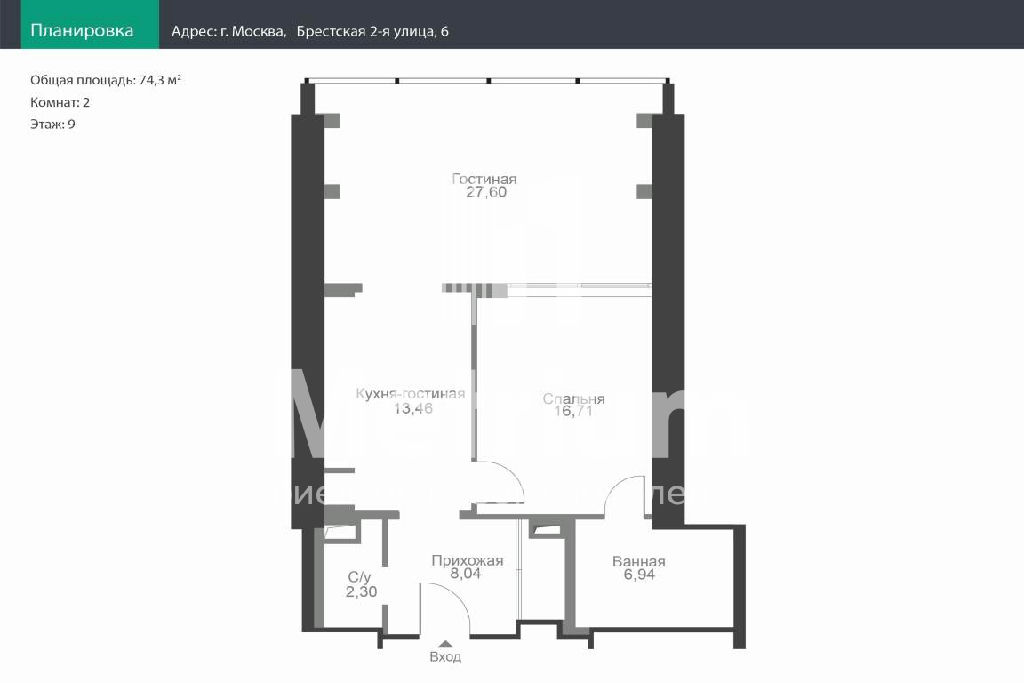 Общая: 74,3 м2